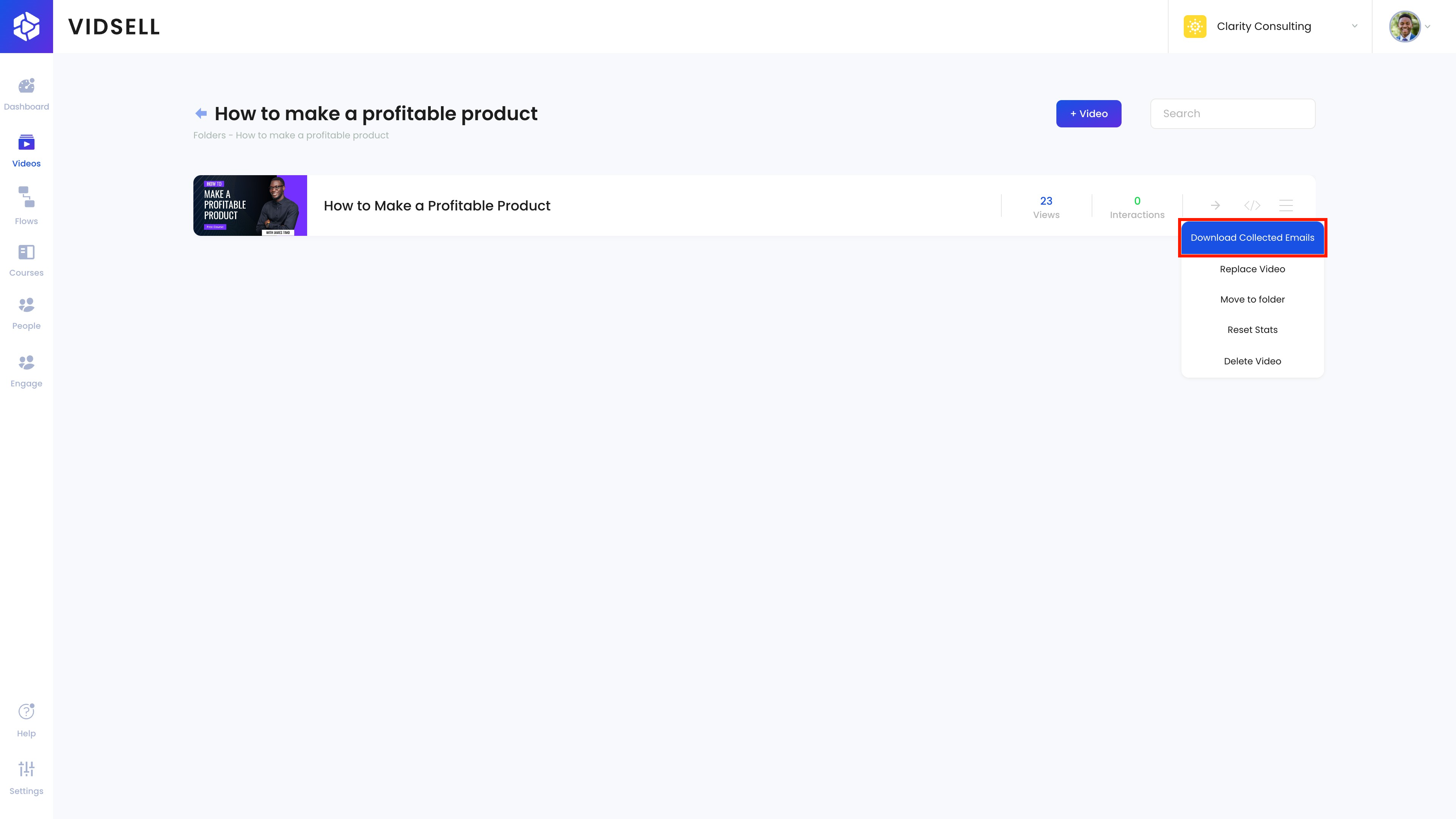 The first option gives you the ability to download a CSV file of all of the emails that you have captured from this video using the in-video email capture form feature.