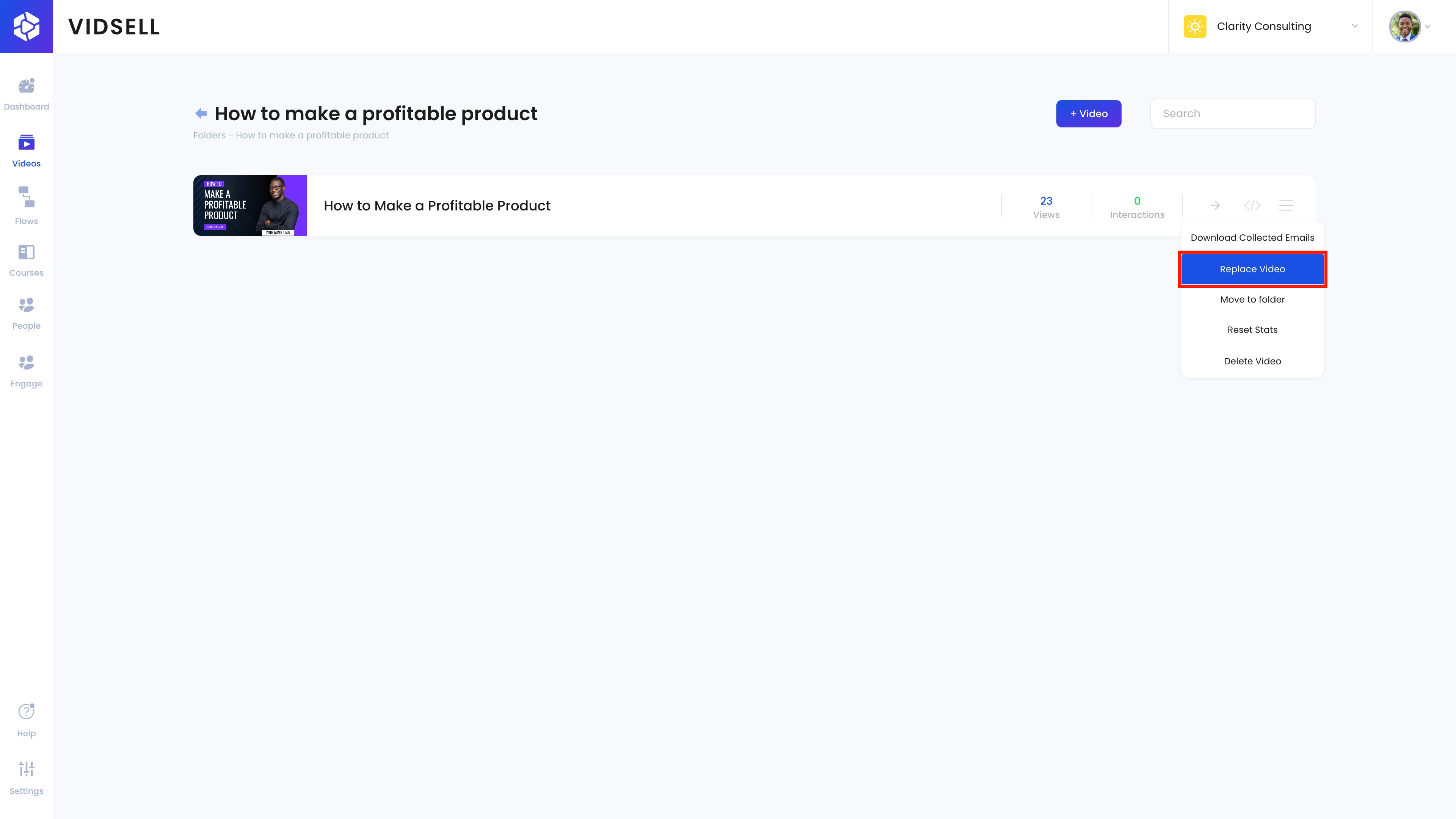 Clicking 'Replace Video' allows you to swap out the video you have uploaded for a different video.