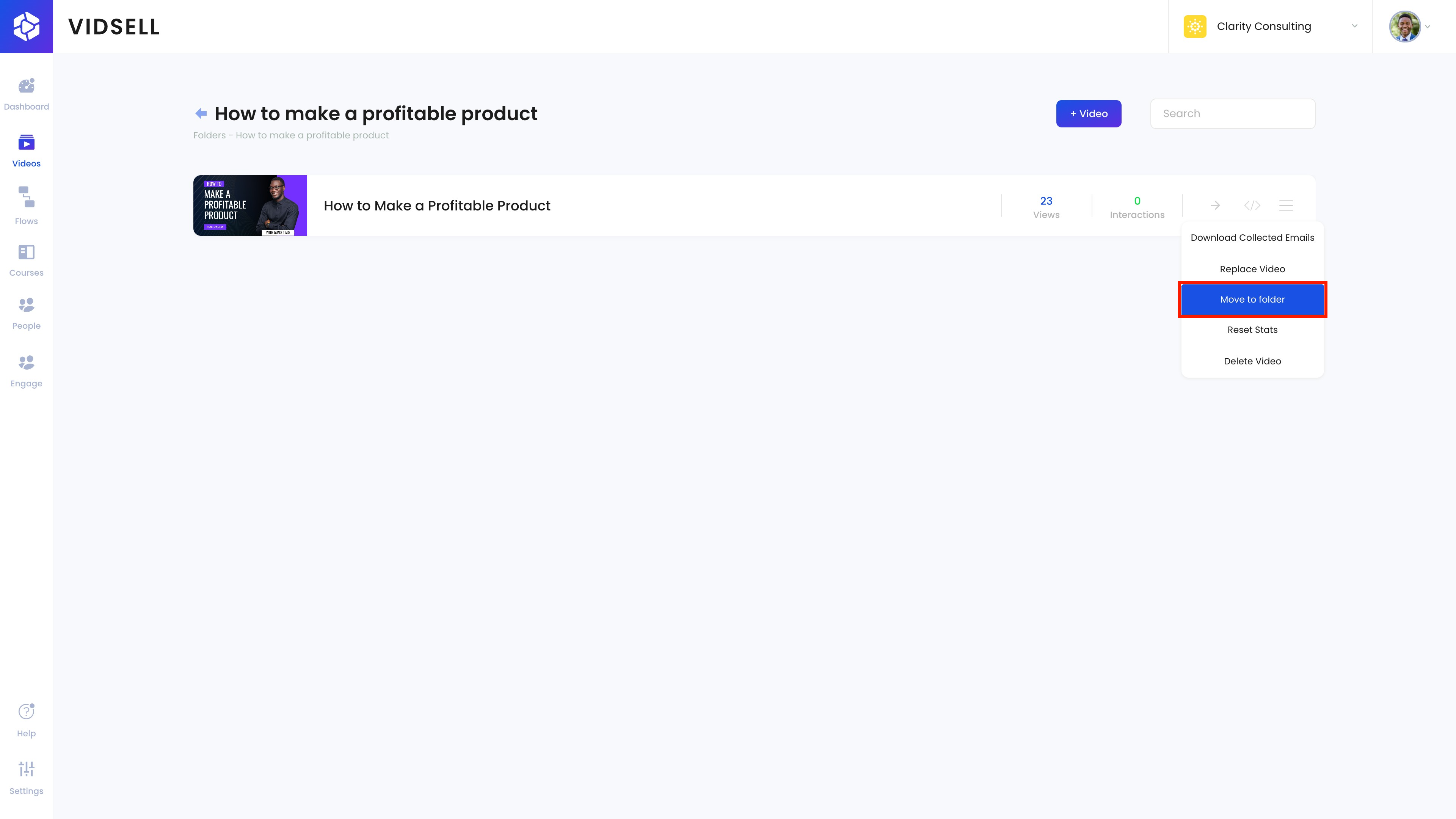 The next option allows you to move the video to any of the folders you have created inside of your videos area.