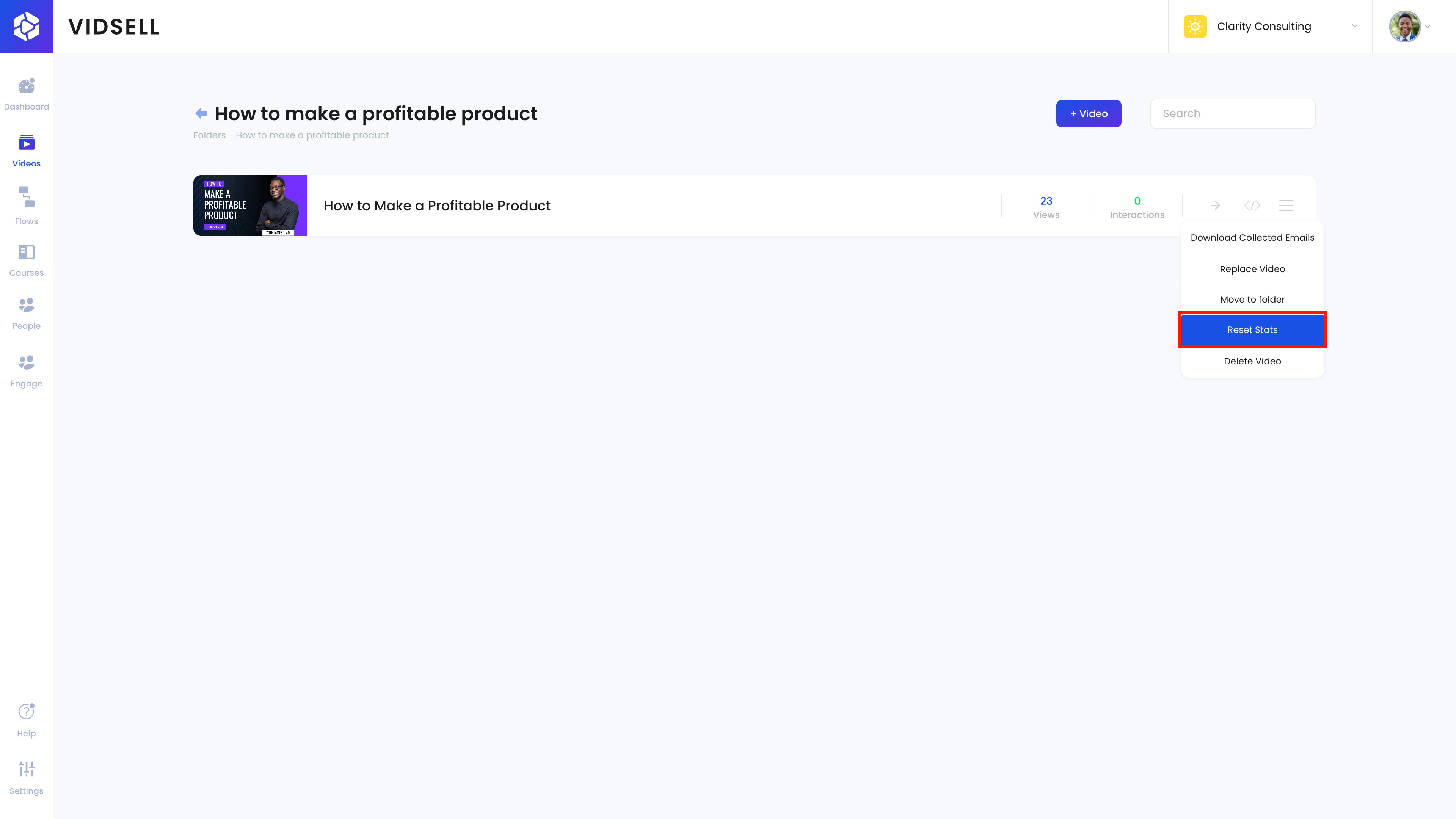 Resetting your stats will clear out any views and interactions counted inside of VidSell.